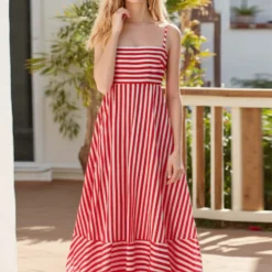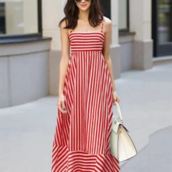 Women’s Long Cami Dress Stripe Print Spaghetti