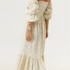 Woman Vintage Floral Dress Puff Long Sleeve