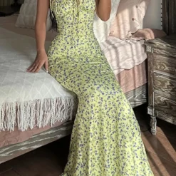 2024 Summer Women Flowy Long Dress Spaghetti Strap
