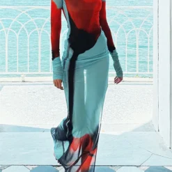 Women’s Sheer Mesh Flower Long Dress