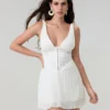 Floral Halter Mini Dress for Women Summer Fashionable Beaded Sleeveless Backless Bodycon Short Dress