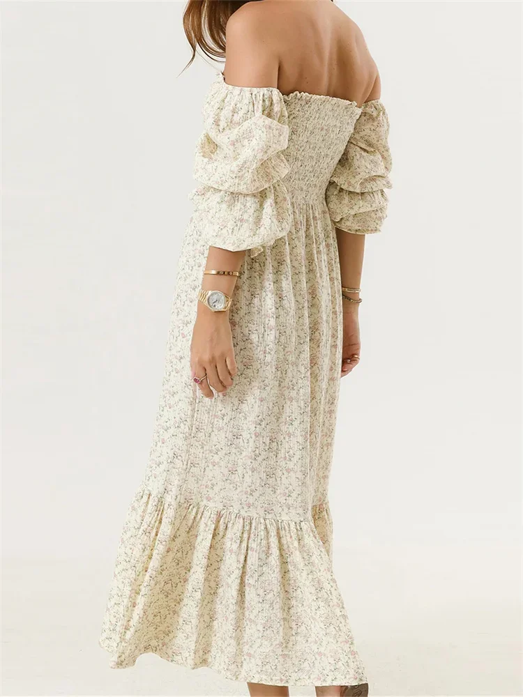 Women’s Autumn Long Beach Dress Long Sleeve Off Shoulder Solid Color/Floral Dress