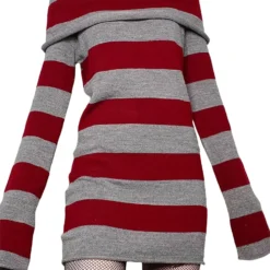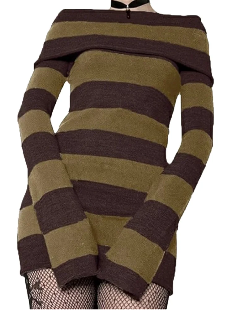 Women Mini Bodycon Dress Stripe Boat-Neck Long Sleeve Short Dress Spring Autumn Wrapped Hip Party Dress