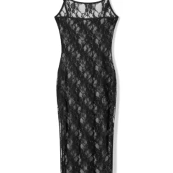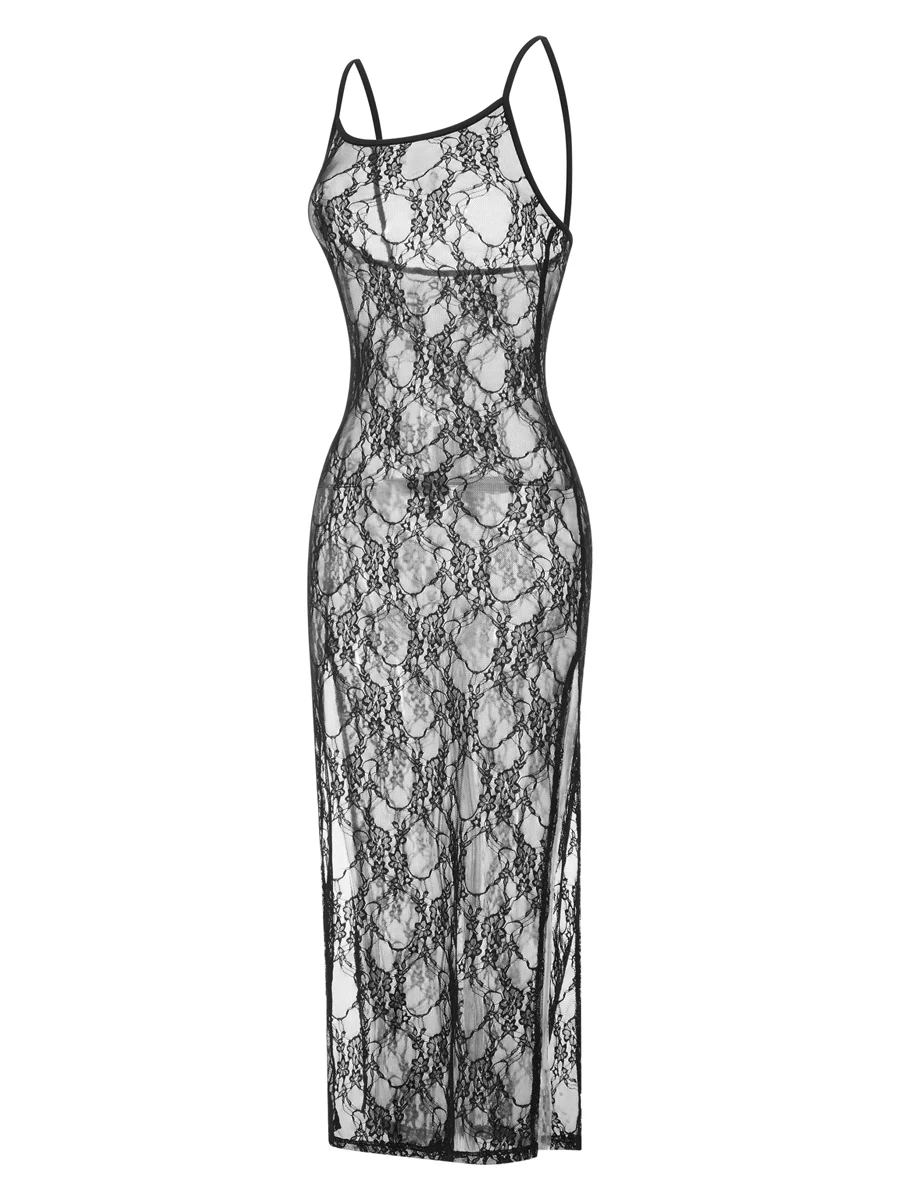 Women Lingerie Lace Babydoll Nightdress Cami Chemise Mesh Sheer Sleeveless Nightwear High Slit Nightgown
