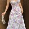 Puff Sleeve Floral Long Dress Women Summer