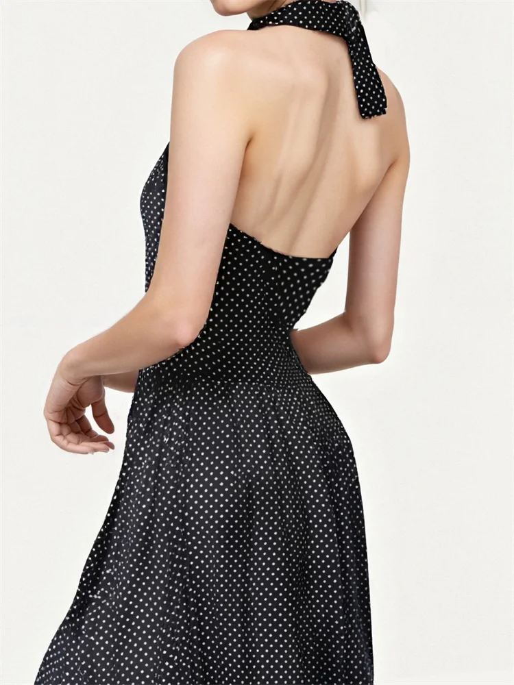 Women Long Dress, Sleeveless Halterneck Backless Dots/Floral Slit Dress for Cocktail Party