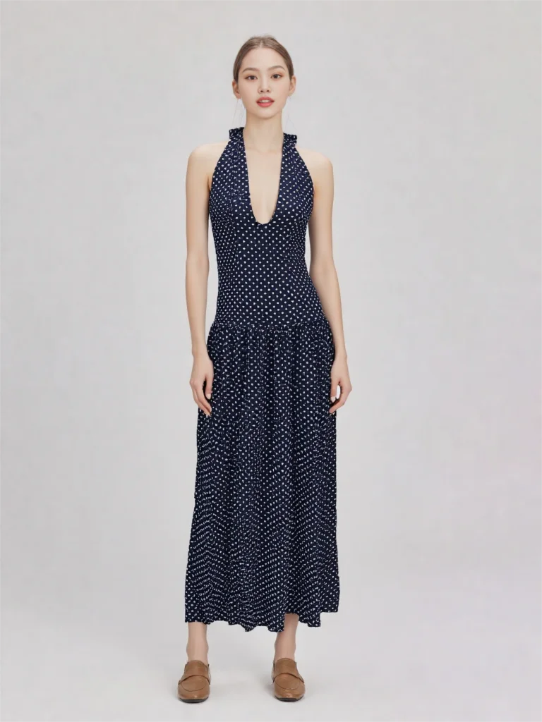 Women Long Dress Sleeveless Halterneck