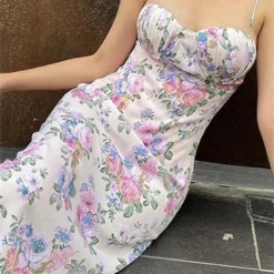 Women Sling Dress, Spaghetti Straps Low-cut Flower Print Summer Midi Dress for Party Vacation