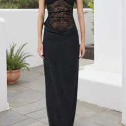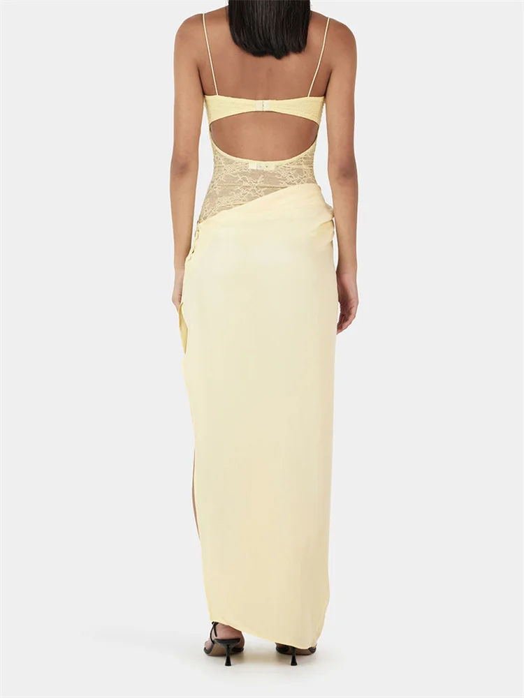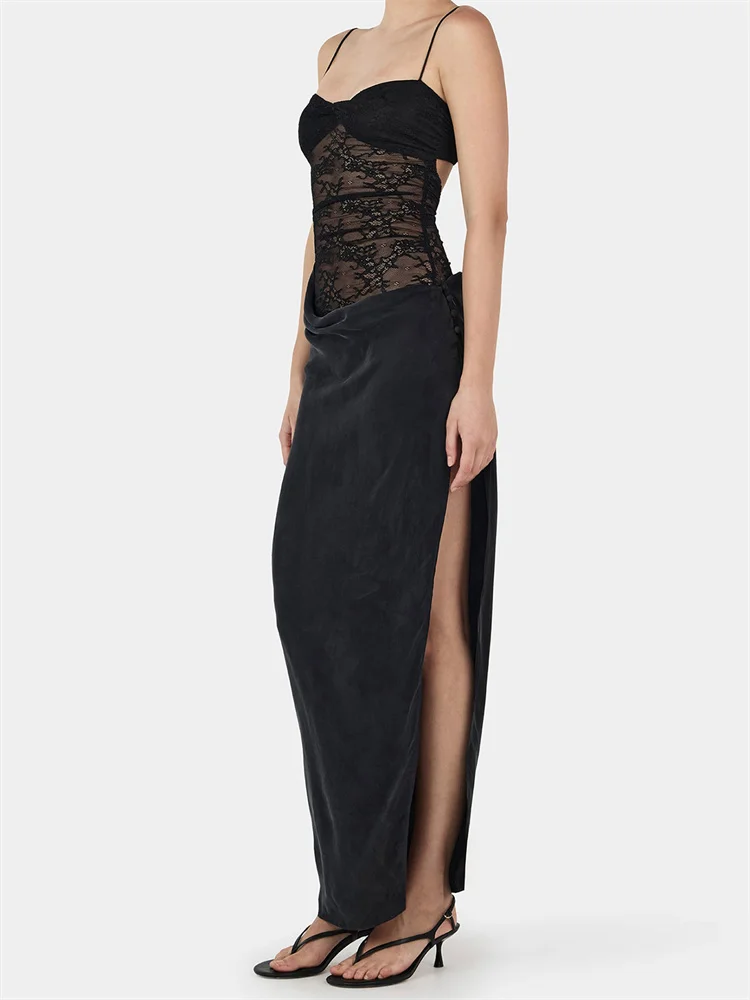 Women Slip Dress, Sleeveless Backless Slit Dress Lace Patchwork Summer Long Dress for Cocktail Party