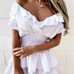Women Summer White Dress Puff Short Sleeve