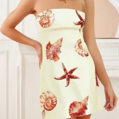 Women Mini Tube Top Dress Slim Flower//Starfish Off Shoulder Sleeveless Bodycon Dress for Party Club