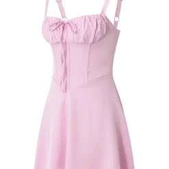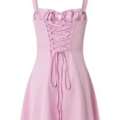 Women Summer Casual Sling Dress Solid Color Tie-Up Fishbone Waist Shaping Sleeveless Backless Short Dress Fashion Party Dress