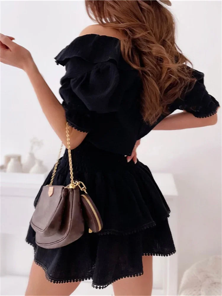 Women Summer White Dress Puff Short Sleeve
