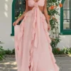 Women Long Dress Cross Halter Backless