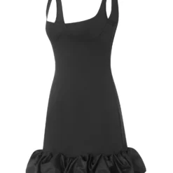 Women Spaghetti Strap Bodycon Dress Solid Color Pleated Ruffle Hem Sleeveless Party Dress for Cocktail Nightclub Beach