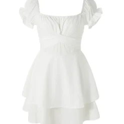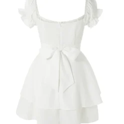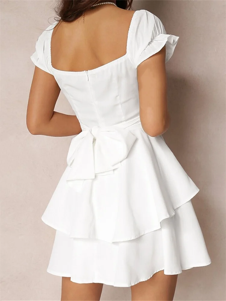 Women's Mini A-Line Dress Solid Color Ruffled Sleeves Square Neck Layered Hem Dress