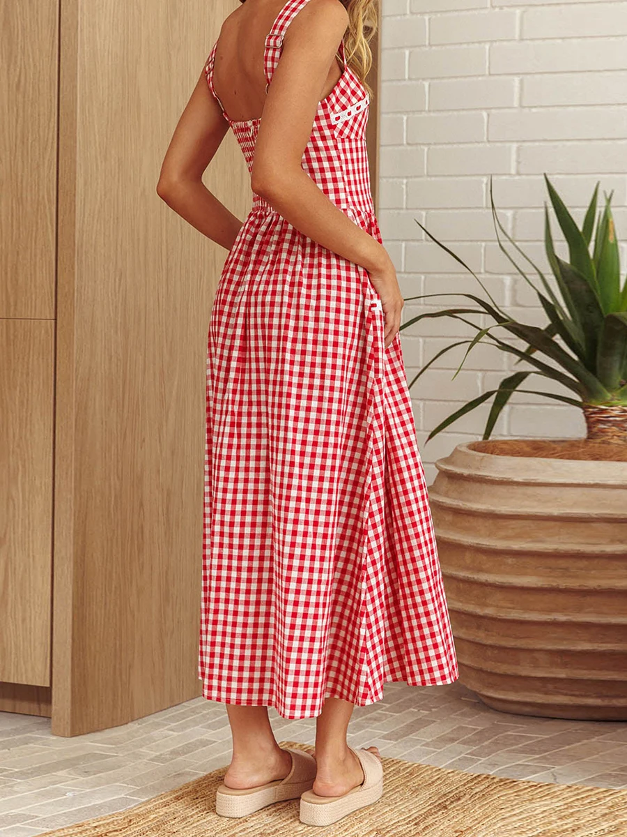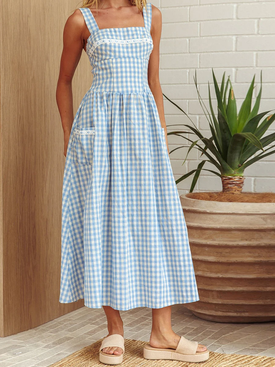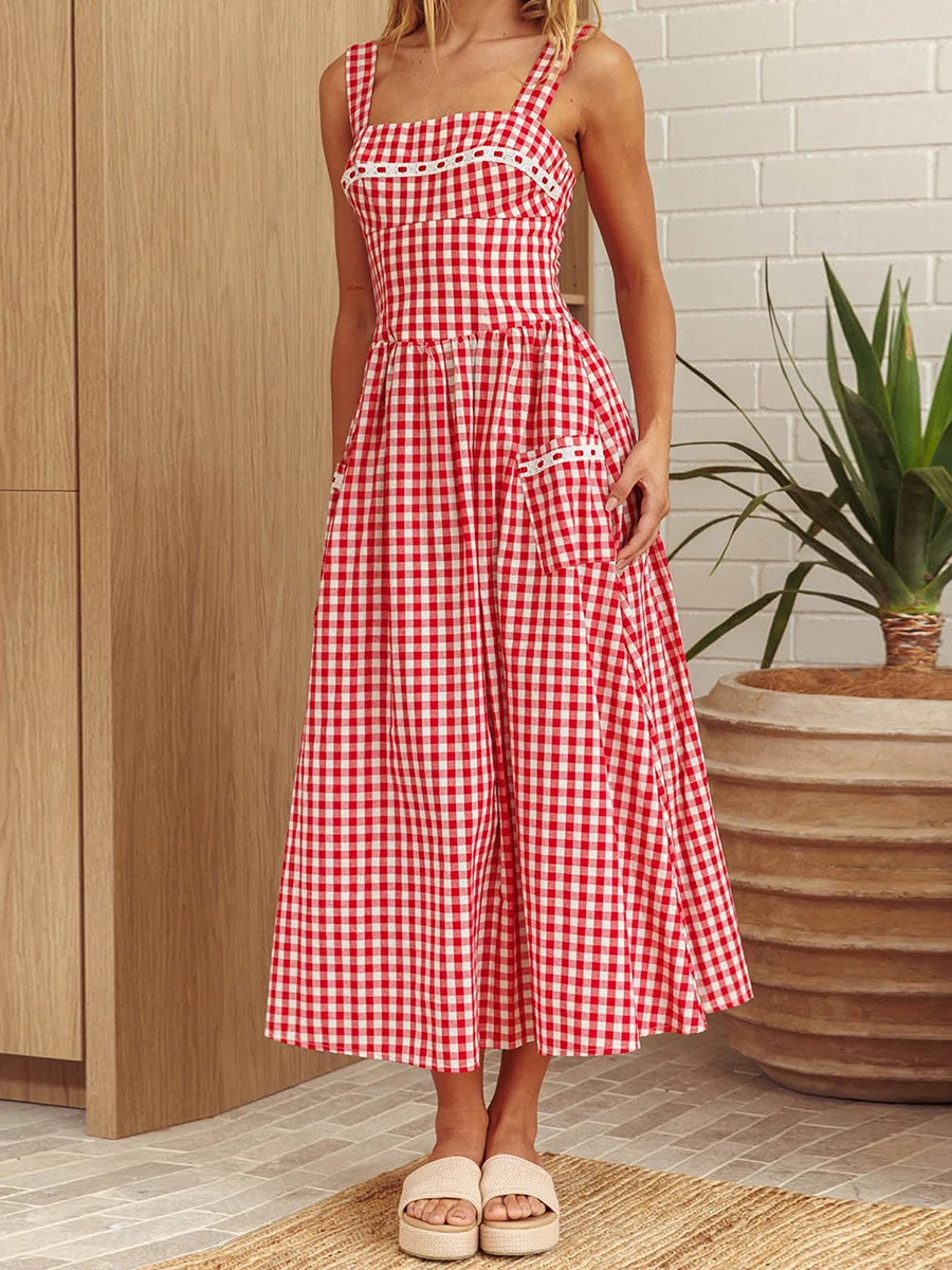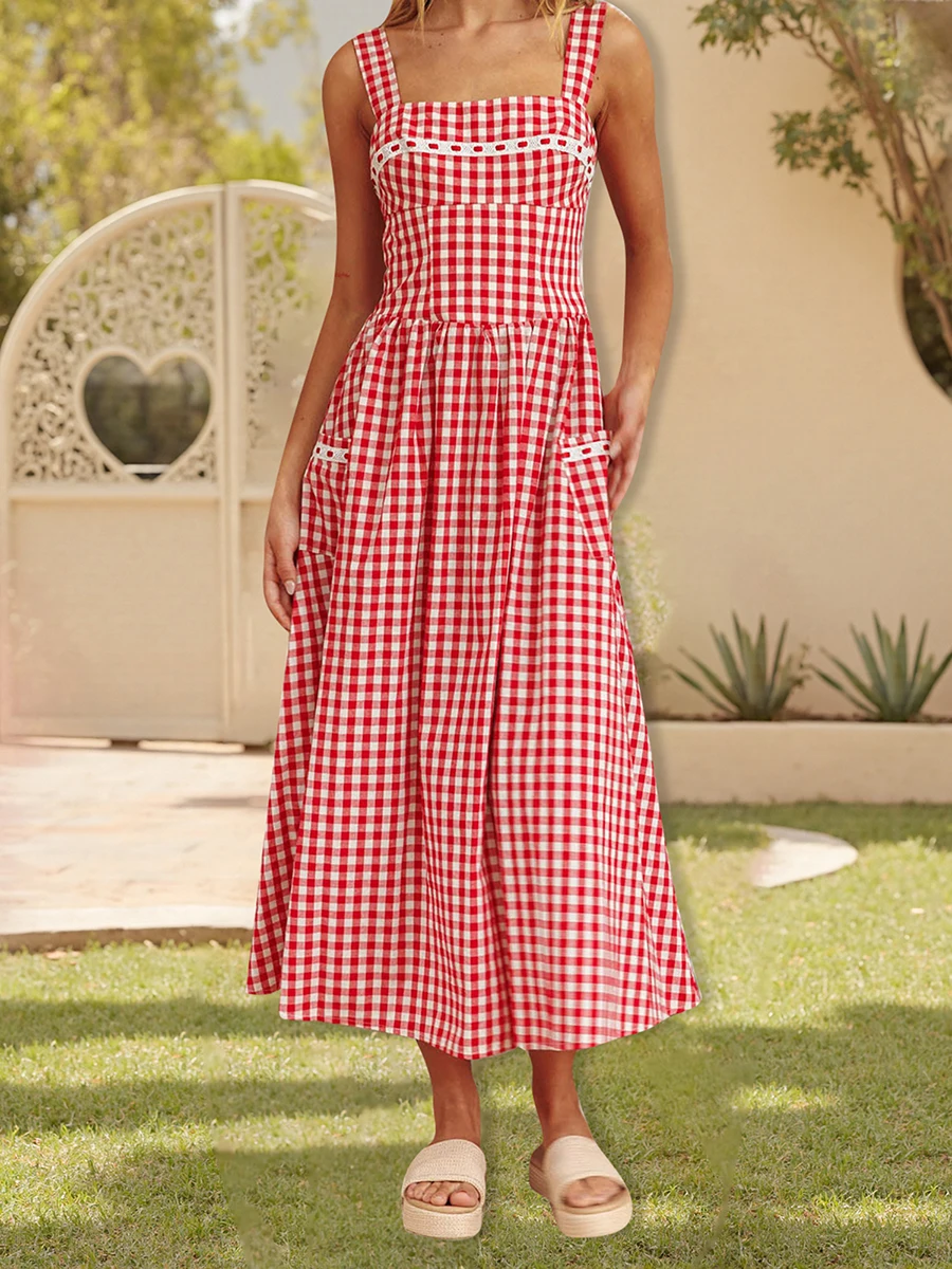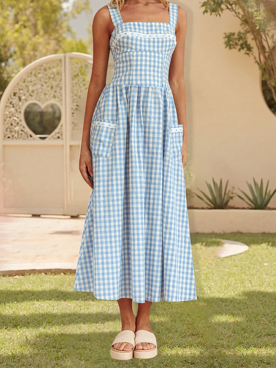 Women’s Plaid Long Cami Dress Summer Sleeveless